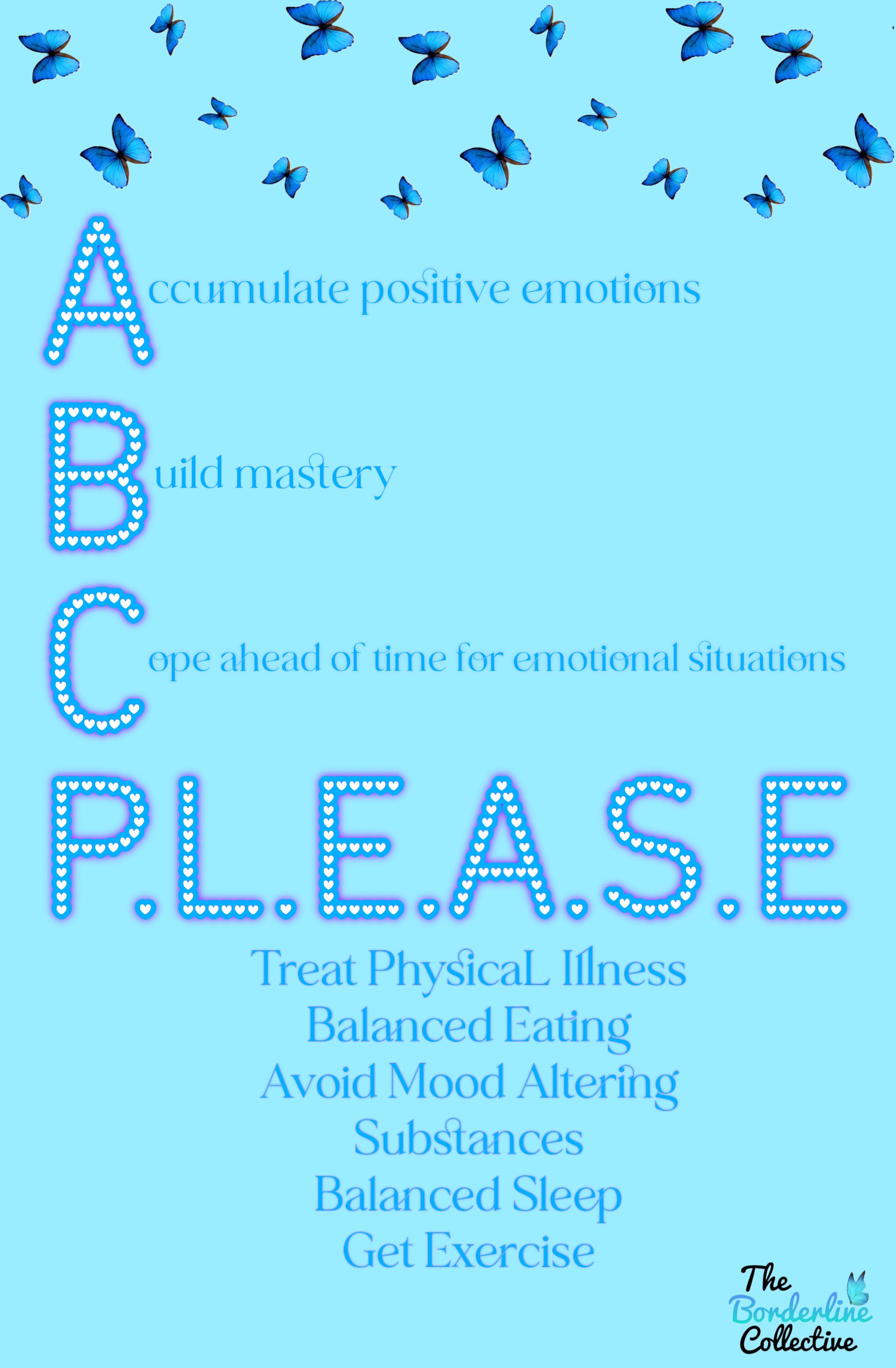 The ABC PLEASE skill reduces vulnerability to emotion storms by taking care of your body and mind.