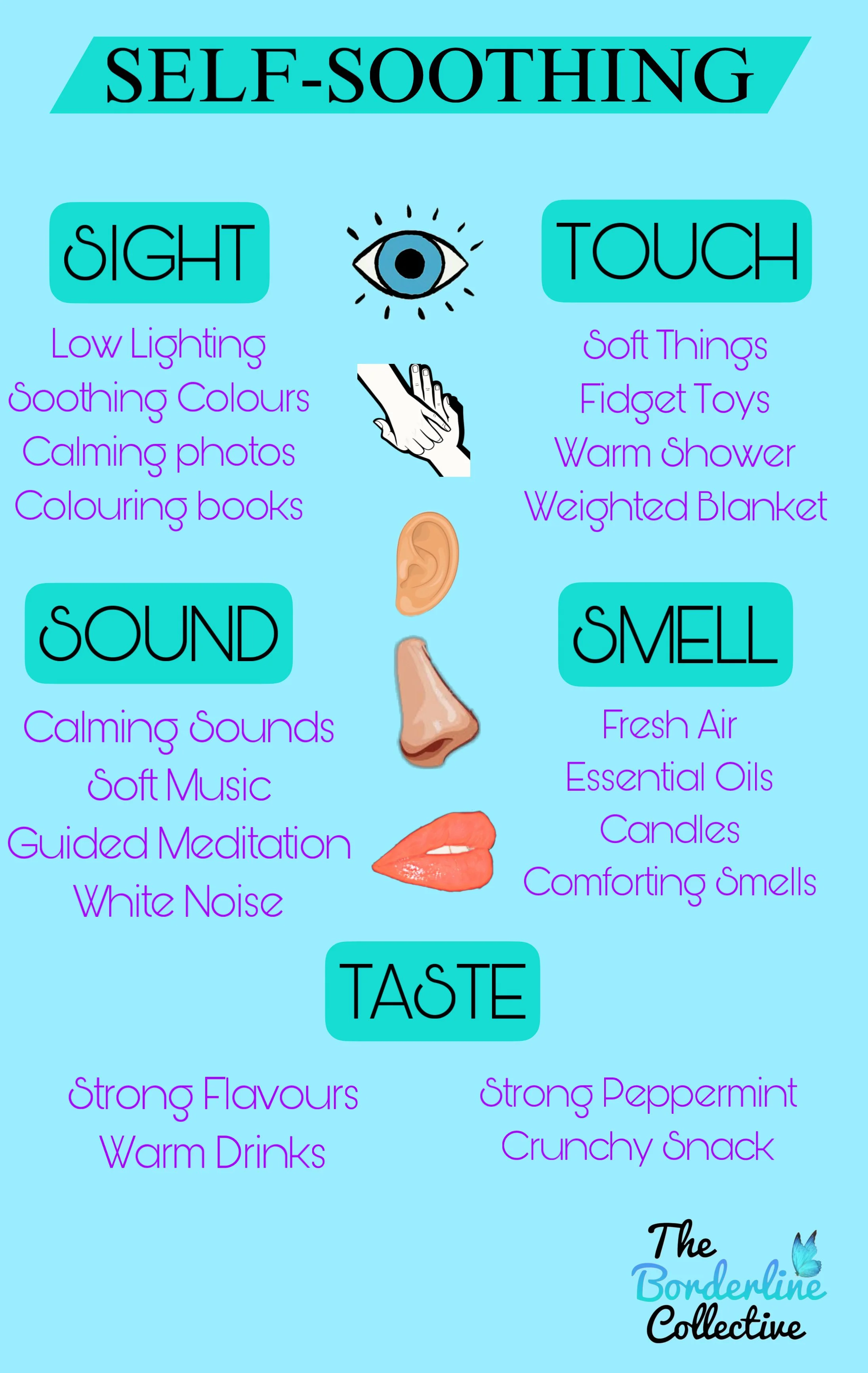 When everything feels too much return to your senses. The DBT self-soothing skill is about reminding your body and mind that you are safe in this moment.
